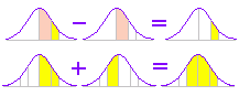 | 正規分布で確率を計算するには,「のりとハサミ」のイメージで図形の切り貼りを考える. | ![]() ![]() |
