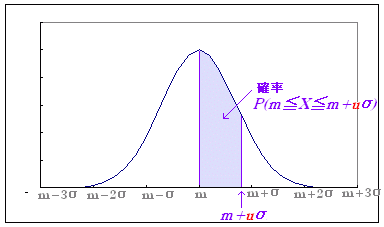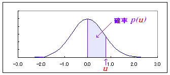■標準正規分布(正規分布表はこのグラフに対応) 0 ≦ Z ≦ u となる確率 ![]() m ≦ X ≦ m+uσ となる確率