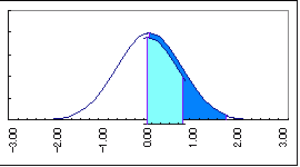 | 例1 確率変数 Z が 標準正規分布 N(0, 1)に従うとき,P( 0 ≦ Z ≦ 1 )を求めよ. ( 標準正規分布において, 0 ≦ Z ≦ 1 となる確率を求めよ。) |