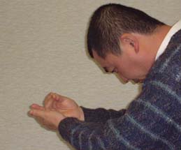 お焼香は、親指・人差し指・中指の3指で香をつまみ、顔の前まで頂いてから、静かに香炉にくべます。