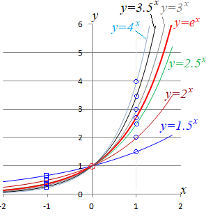 指数関数  のグラフを描くためには,  の値が  など無数にある無理数の場合の  の値を決める必要があります.これを決めなければ,グラフは穴だらけになり「連続」とか「微分」という議論ができなくなります.
