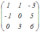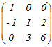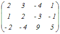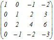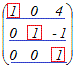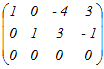・1行目と3行目を交換する ![]() 3行目から1行目の3倍を引く ![]() 4行目に2行目を足す ![]() |