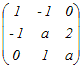 ![]() ![]() 3行目から2行目のa−1倍を引く ![]() 2−a(a−1)=0 a2−a−2=0 (a−2)(a+1)=0 a=2, −1 a>0よりa=2 → 2 |