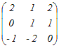 1←2行目に3行目(の1倍)を足せば得られる・1つの行を定数倍(≠0)する. ・1つの行に他の行の定数倍(≠0)を加える. 3←3行目を−1倍すれば得られる 4←1行目と2行目を入れ替えれば得られる 5←1行目に3行目の2倍を足せば得られる 2←2行目は,行基本変形では得られない → 2 |