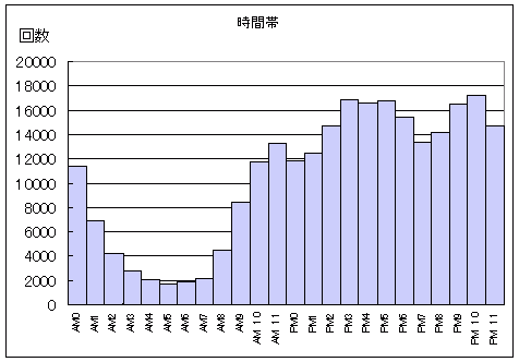 右図下はこの期間の時間帯別アクセス数です。学校で演習の時間に使いやすい3,4校時や5,6校時には意外と少なく、むしろ午後3時〜6時、午後9時〜11時のアクセスが多いことが分かります。