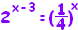 22x-4=22-x → 2x-4=2-x これで指数は外れましたので、あとは単なる1次方程式です。 3x=6 より x=2・・・答 ●2の例