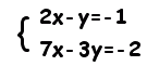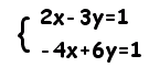 Δ=12-12=0 2x-3y=1 → -4x+6y=-2・・・(1) 条件より -4x+6y=1 ・・・(2) (1)(2)を両方満たすことはできないから, 解なし・・・答