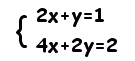 Δ=4-4=0 2x+y=1 の辺々2倍すると 4x+2y=2 と一致するから, 2x+y=1 を満たすx,yは 両方の方程式を満たす。 2x+y=1を満たす(x,y)はすべて解・・・答
