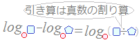 log412−log43=log4(12÷3)=log44と変形する. ここでlog44=1 |