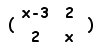 【例3.1】のとき, wxMaximaで,代数→手入力による行列の生成→行数2,列数2,タイプ:一般,変数名:Cなどとする →成分を x−3 2 2 x と埋める. 逆行列を求める関数はinvert()なので,invert(C)と記入して,Shift+Enter すなわち となって,逆行列が示される. ただし,逆行列が存在するためには,行列式Δ≠0 ⇔ x≠−1, 4が条件になる. |