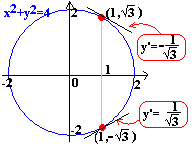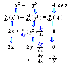 例 x2+y2=4のとき,x=1→yは2つ,y’も2つ ![]() 例 xy=4のとき、x=2→yは1つ,y’も1つ ![]() |