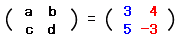 点(1,0)を点(3,5)に,点(0,1)を点(4,-3)に移す1次変換の行列を求めなさ い。
