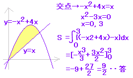 (3) y=-x2+4x と y=x とで囲まれる図形の面積