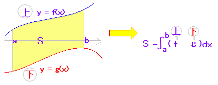 初めの公式の見直し:(イ) 上がy=0,下がy=f(x)と見ます。