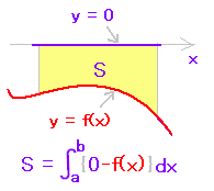 (f(x)≦0のとき)y=-f(x)のグラフを作ると,このグラフはx軸よりも上にあるので,符号を変えた定積分は面積を表わします