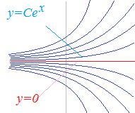 (5)においてC=0のときはy=0となって,この場合も元の微分方程式を満たす.(特異解と呼ばれる)
