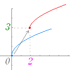 • このグラフは, x=0 のところで傾きが∞になっているので「垂直方向に」出ている.(図1’のようにはならない.)
