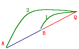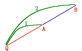 次のうち線分ABを2:1に外分する点Qを表わしている図は