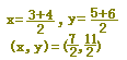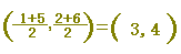 2点A(1,2),B(5,6)を結ぶ線分ABの中点の座標は