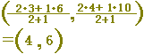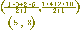 2点A(3,4),B(6,10)を結ぶ線分ABを2:1に内分する点の座標は