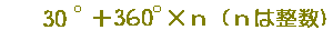 (m=n+1 [nは全整数⇔mは全整数] となっている.) ウ) θ= 390°+360°×k ( k は整数)のときも同様. |
