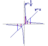 y=xとy=1/xのグラフを描いておき,