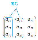 (1) 例えばa11に対しては,次のようにa22a33の2×2行列を考える.