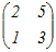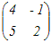 これをdet(A)=4 · 2−5·(−1)=13で割ると