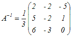 これをdet(A)=1(20−18)−2(10−8)+(−1)(−45+40)=2−4+5=3で割ると