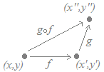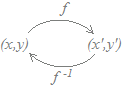 1次変換によって,元の点(x, y)が新しい点(x', y' )に移されるとき,新しい点(x', y' )を元の点(x, y)という.