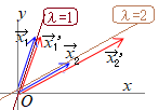 となって,が不動点となるから,前述の(2)により,固有ベクトル に沿った直線上の点は,すべて不動点となる.