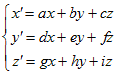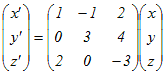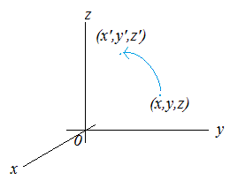 (6) 3次元のベクトルR3から3次元のベクトルR3への写像:[3次元空間内の点の移動 (x,y,z)(x’,y’,z’)