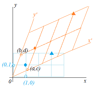 ○ このとき,図の水色で示した格子はを2辺とする平行四辺形に移される.
