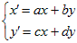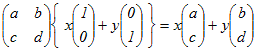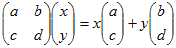行列の等式は「対応する各成分がそれぞれ等しいこと」「対応する成分の数だけの連立方程式」と同じなので,1次変換の連立方程式は行列で表すことができる.