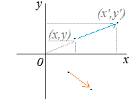(4) 2次元のベクトルR2から2次元のベクトルR2への写像:[平面上の点の移動 (x,y)(x’,y’)