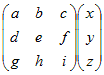 アフィン変換は,一次変換にさらに平行移動を加えたもので,2×2行列では表せないが,次のような3×3行列を利用すると,この変換を1つの行列で表すことができる.