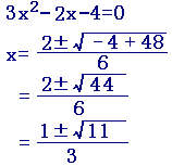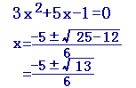 例 3x2−4x−5=0 を解くには a=3,b=-4,c=-5 を解の公式に代入します.
