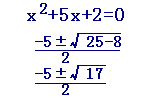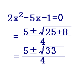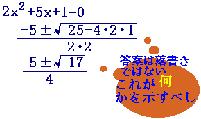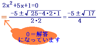 例 2x2+5x+1=0 を解くには a=2,b=5,c=1 を解の公式に代入します.