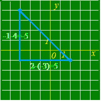y座標の差は5−1=4. 公式(1)に当てはめると, AB===5 ![]() 2点A(−3, 4), B(2, −1)間の距離 :