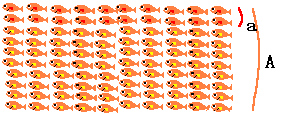 上のような方法で標識を付けた魚を1000匹放流し,数か月後1000匹回収したところ,標識の付いた魚が10匹含まれていたとすれば,この場所にこの魚は全部で何匹いると推定できますか.(回収した魚も含めて数えるものとします.)