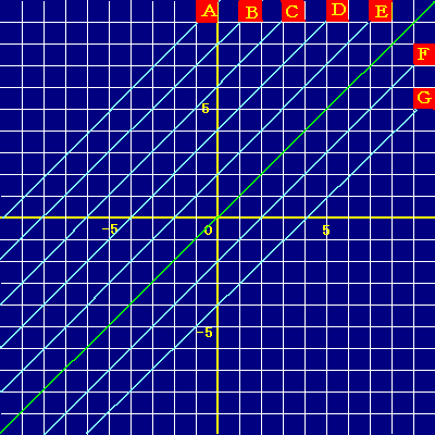 このグラフは1次関数 y=x+5 を表わしています。