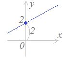 【例4】右の直線の傾きは1です. 直線の方程式はy=1x+b=x+bの形になります. 切片b=2も読み取ると,結局,直線の方程式はy=x+2であることが分かります.