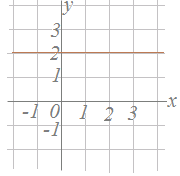 このように,x軸に平行な直線の傾きは0です. 【例9】右の直線の傾きは0です.(a=0) 直線の方程式はy=0x+b=bの形になります. 切片2も読み取ると,結局,直線の方程式はy=2であることが分かります. |