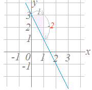 【例8】右の直線の傾きは−2です.(a=−2) 直線の方程式はy=−2x+bの形になります. 切片3も読み取ると,結局,直線の方程式はy=−2x+3であることが分かります.