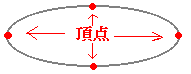 (三角形や四角形と異なり,角(かど)がなくても頂点といいます.参考までに,高等学校で習う楕円(だえん)では次のように頂点が4個あります.)
