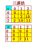⇒ あります. 三進法では0,1,2の3つの数を用いて数字を表わし,3になったら1つ位が上がります.(3が3つになればさらに位が上がります.)