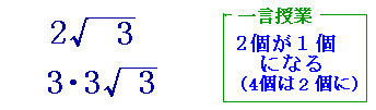 【解説】 ○根号の中がある数の2乗になっていれば,「1枚にして外に出す」ことができます.