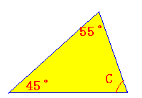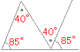 「三角形の内角の和は180°」という性質を使えば,∠xの内角=180°−(40°+85°)=55°