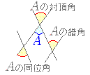 角Aの対頂角,同位角,錯角は右図のようになっているから,∠BACと∠DCAは