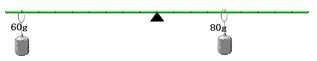 次のような「てこ」の場合,左右どちらが下がるか答えなさい.